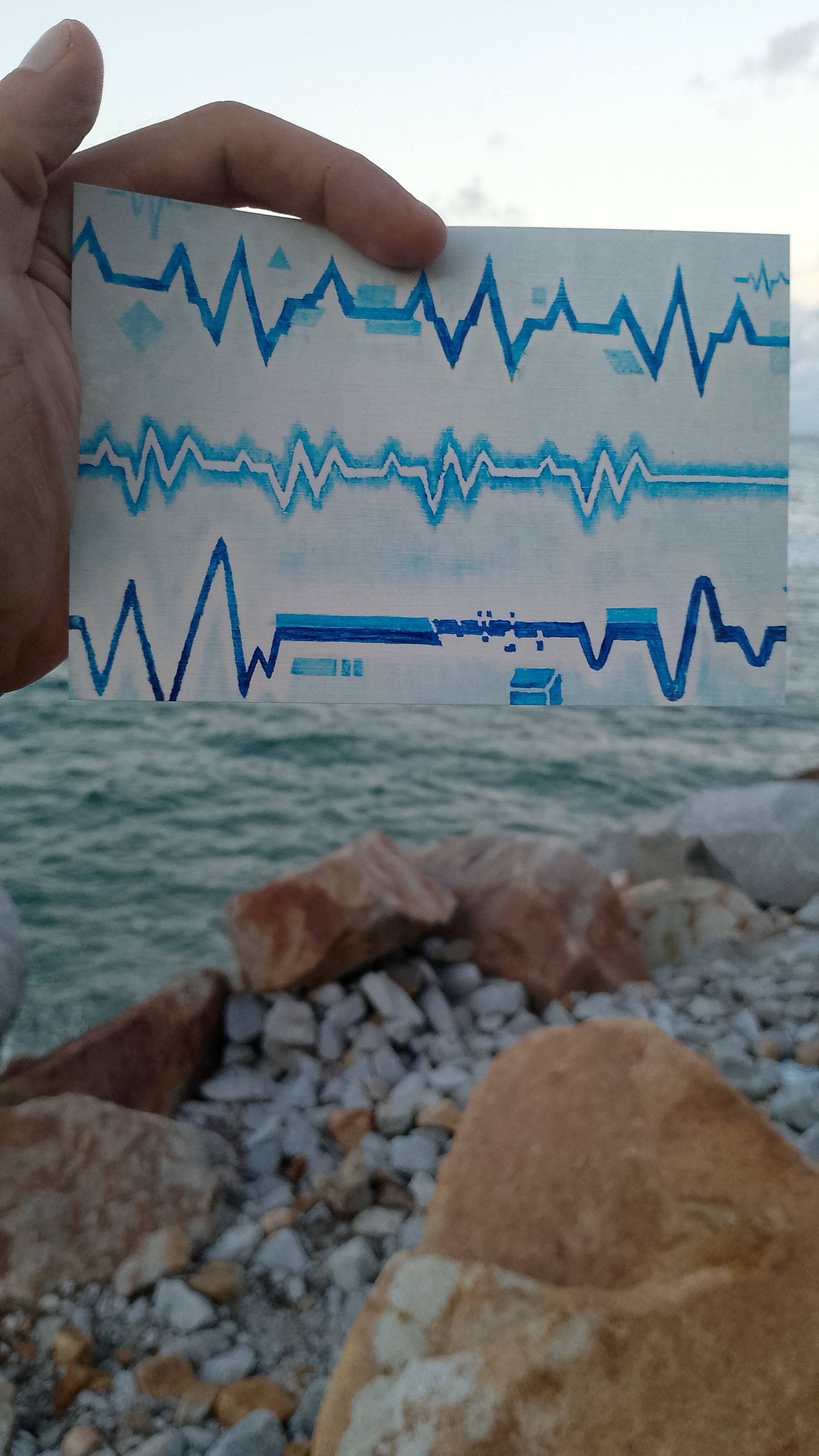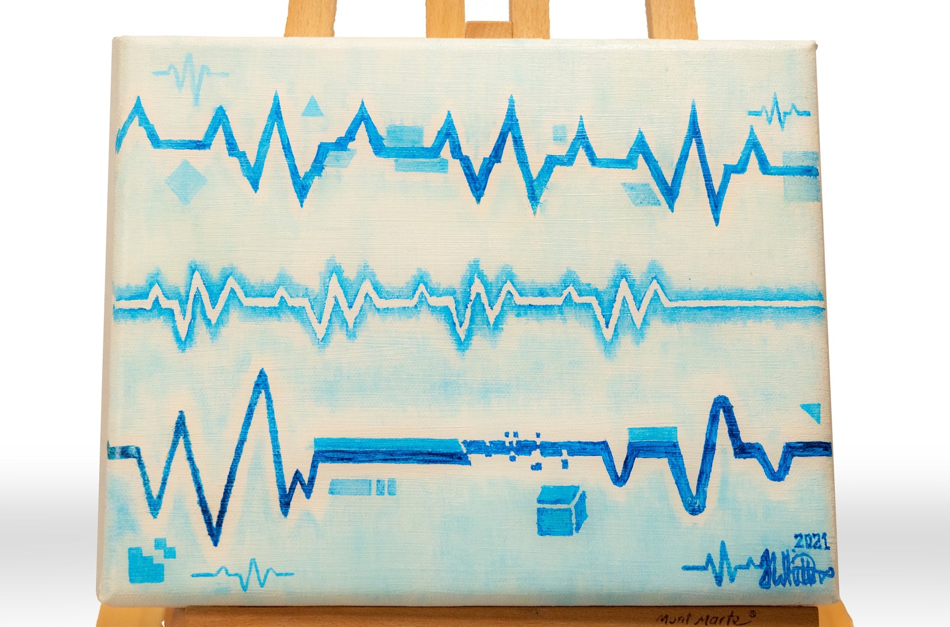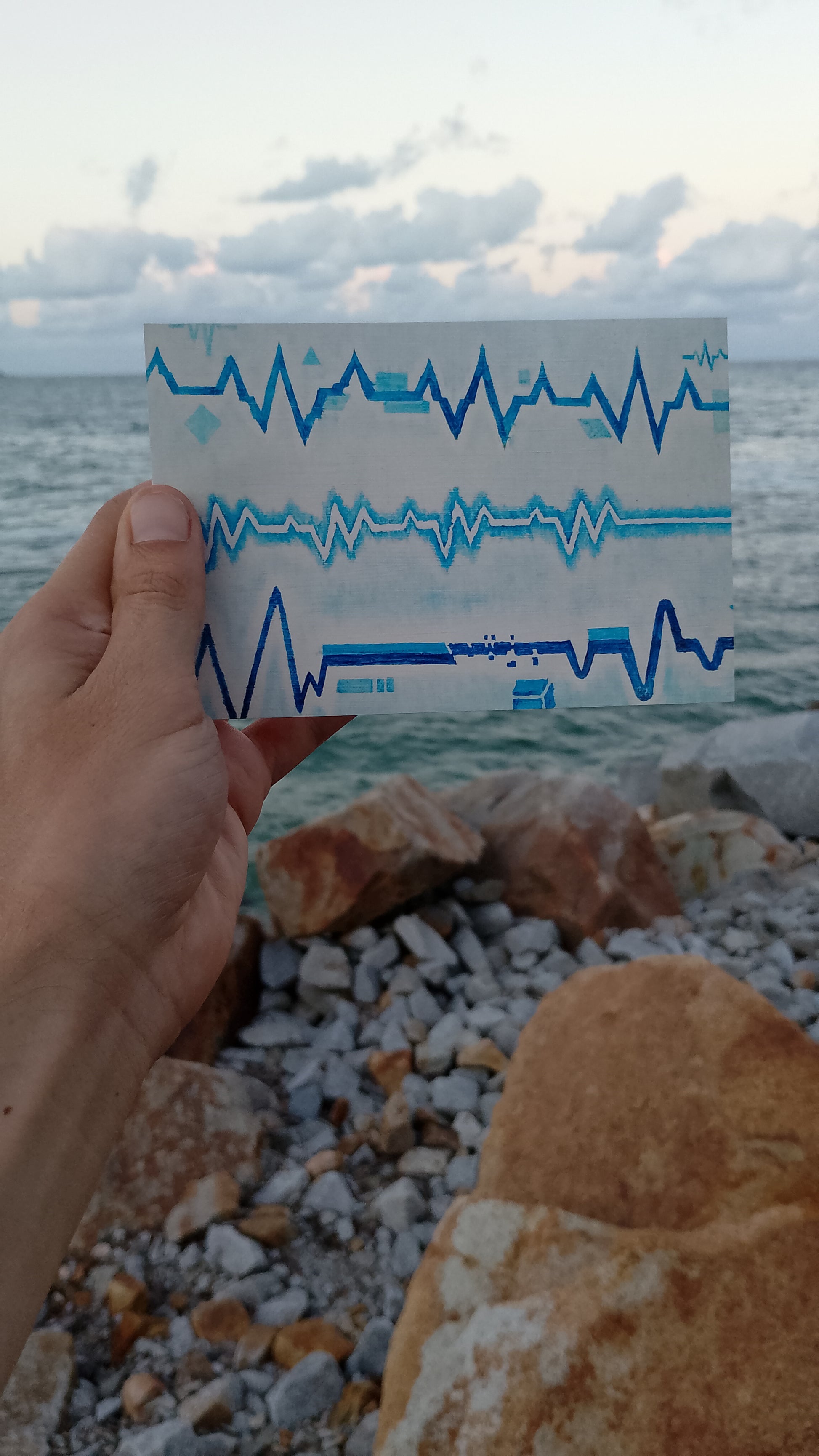A stark work showing the fractured and dislocated division between the natural and the digital, the lines between them blurring. The colours are cold, detached, sterilised. Giving the feel of a medical environment like an ether.