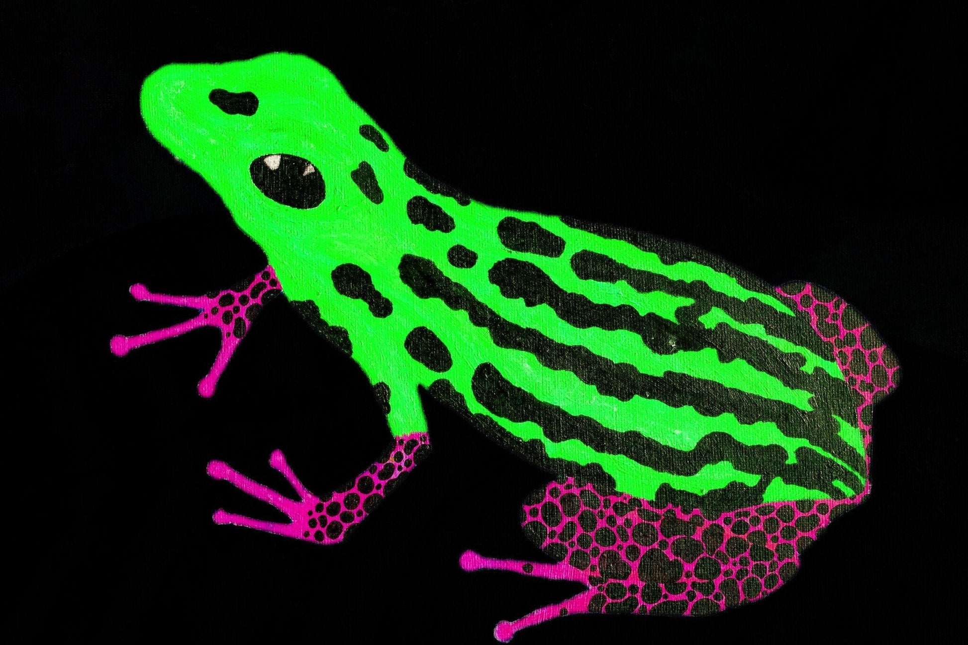 这幅色彩斑斓的箭毒蛙作品最初是在它们的自然栖息地中创作的,但我去掉了背景并改变了青蛙的颜色,从而创作出了这幅引人注目的设计。现在青蛙完全清晰,因为散景背景已被移除,经过一些修改后,它变得引人注目且充满活力。